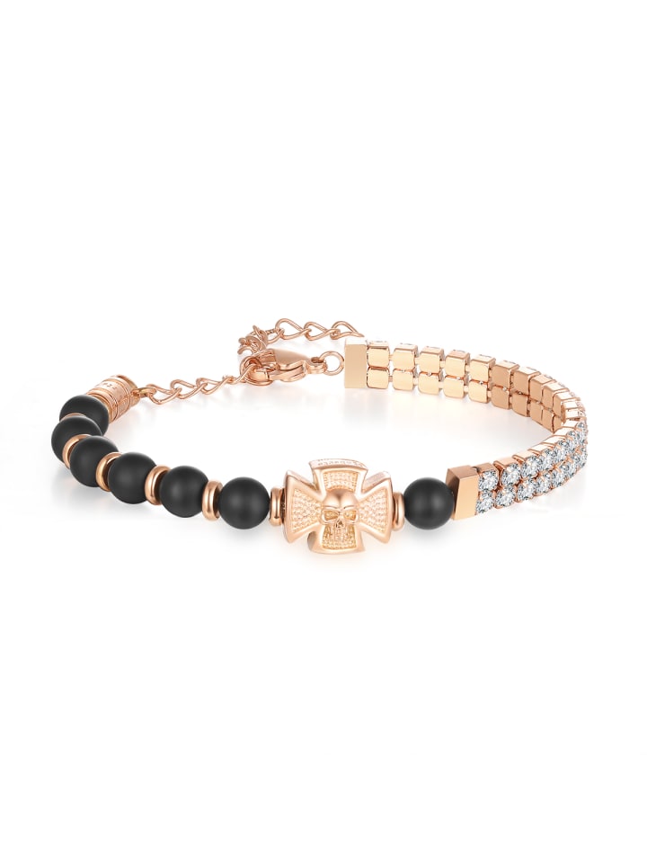 Откройте для себя эксклюзивный браслет с бусинами из оникса, стразами и оригинальными деталями - эффектный аксессуар, идеально сочетающий элегантность и дерзкий шарм. Благодаря стильному двухсоставному дизайну и изящным деталям этот браслет непременно привлечет внимание и добавит изюминку вашему образу. • Роскошный дизайн: одна половина браслета украшена глубокими черными бусинами из оникса, тонко акцентированными дисками цвета розового золота, а другая половина сверкает блестящими стразами. • Крест-череп в стиле рок: дизайн основан на небольшом кресте, украшенном детально проработанным черепом - смелый аксессуар, подчеркивающий ваш индивидуальный стиль. • Высококачественные материалы: сочетание полированной нержавеющей стали, тонких бусин из оникса и сверкающих стразов гарантирует роскошную отделку и исключительную долговечность. • Универсальный и легко сочетающийся с любой одеждой: будь то элегантный или повседневный стиль - этот браслет является универсальным аксессуаром, который добавит вашему образу уникальный, дерзкий штрих. Сделайте стильное заявление с этим особенным браслетом - ваш новый любимый аксессуар на все случаи жизни ждет вас! *Каждое украшение поставляется в элегантной подарочной коробке Roberto Geissini - идеальный подарок или украшение для себя. Материал: - 50% нержавеющая сталь - 50% другие материалы
