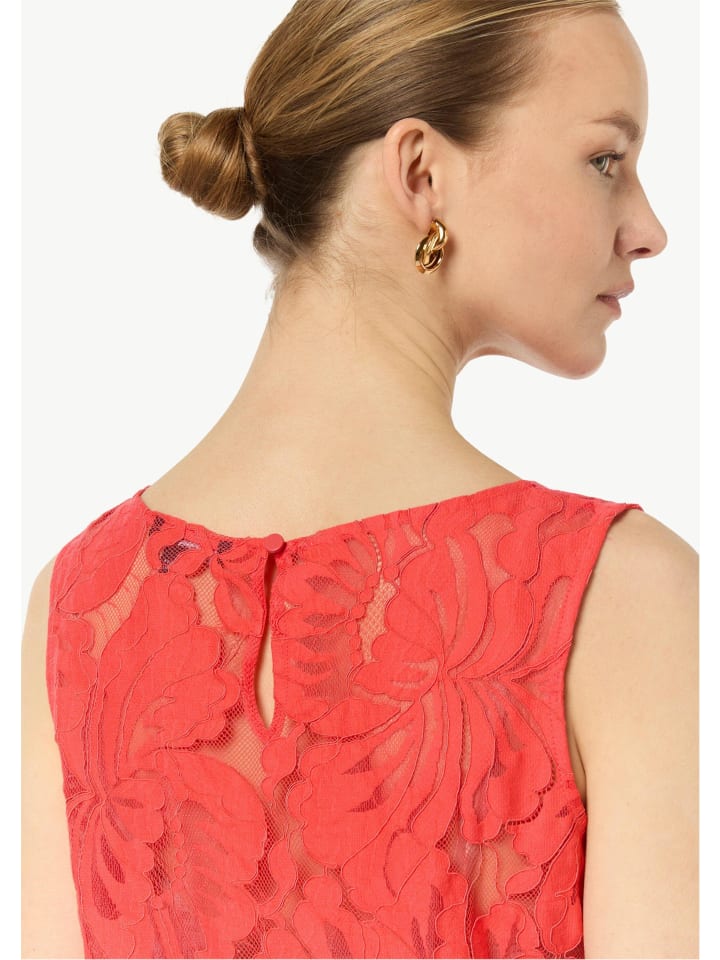 Стильная кружевная блузка: эта изящная хлопковая блузка впечатляет женственным кружевом и вырезом-лодочкой. Силуэт без рукавов и стандартный крой создают привлекательный силуэт. Застежка на пуговицы делает эту вещь универсальной как для торжественных случаев, так и для повседневной носки - модный вариант на все случаи жизни. - Стандартный крой - Изящная ткань - С кружевом - Вырез-лодочка - Застежка на пуговицы, без рукавов Материал: - 48% полиамид - 47% хлопок - 5% эластан