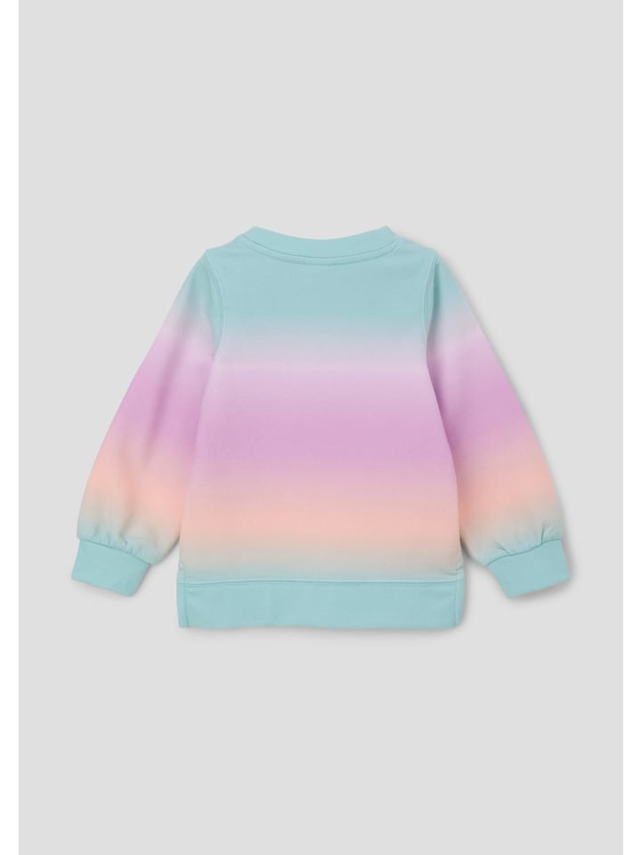 Эта повседневная толстовка с модным градиентом и классным принтом спереди порадует маленьких модниц. Стандартный крой и разрезы по бокам обеспечивают свободу движений в активные дни. Благодаря удобному круглому вырезу и длинным рукавам, она идеально подойдет для весенних приключений или прохладных летних дней. Носите ее с шортами или джинсами для создания расслабленного образа. - Стандартный крой - Изготовлена из гладкой хлопковой ткани - С принтом спереди с ярким градиентом цвета - Круглый вырез - Ребристые манжеты на рукавах, длинные рукава Материал: - 60% хлопок - 40% полиэстер