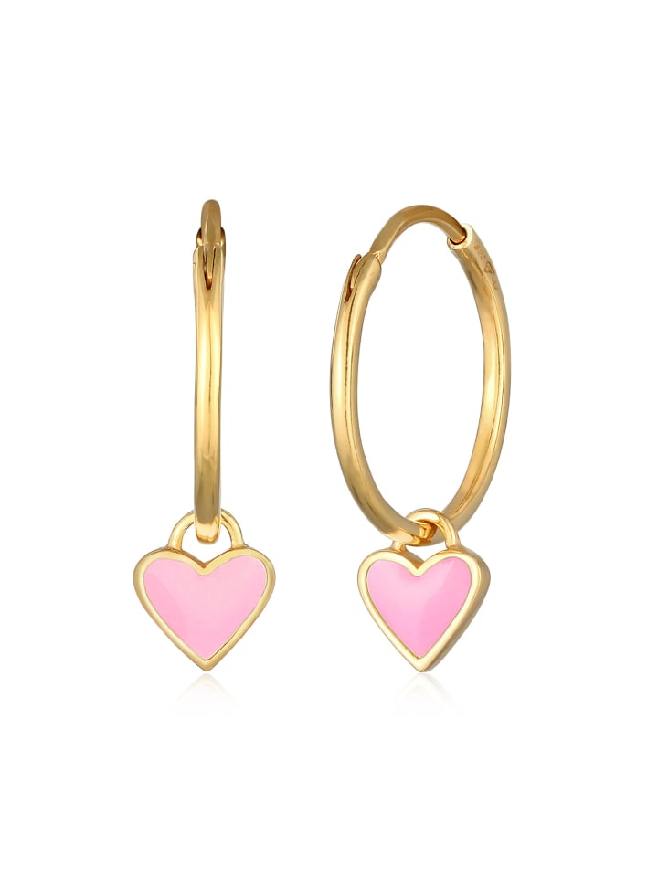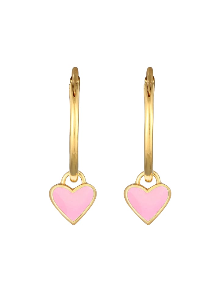 Elli Розовые серьги в форме сердца, серебро 925 пробы