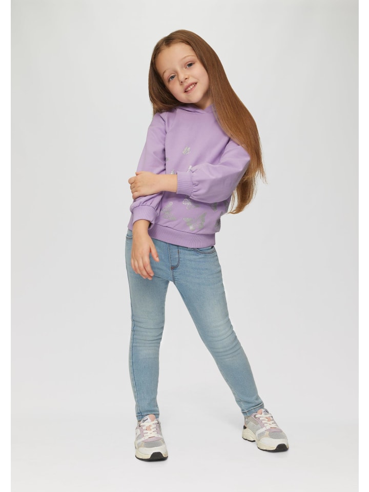 Ослепительный образ для маленьких законодателей моды! Эта толстовка с блестящим принтом обязательно вызовет улыбку на лице любого ребенка. Изготовленная из мягкого хлопка, она обеспечивает комфорт активным детям от 2 до 9 лет. Идеально подходит для дней рождения или игр на детской площадке, эта толстовка с длинными рукавами универсальна и добавит немного блеска в повседневную жизнь. - Изготовлена из мягкой хлопковой ткани - С принтом на передней части с привлекательными блестками - Круглый вырез горловины с несъемным капюшоном - Ребристые манжеты на длинных рукавах Материал: - 95% хлопок - 5% эластан