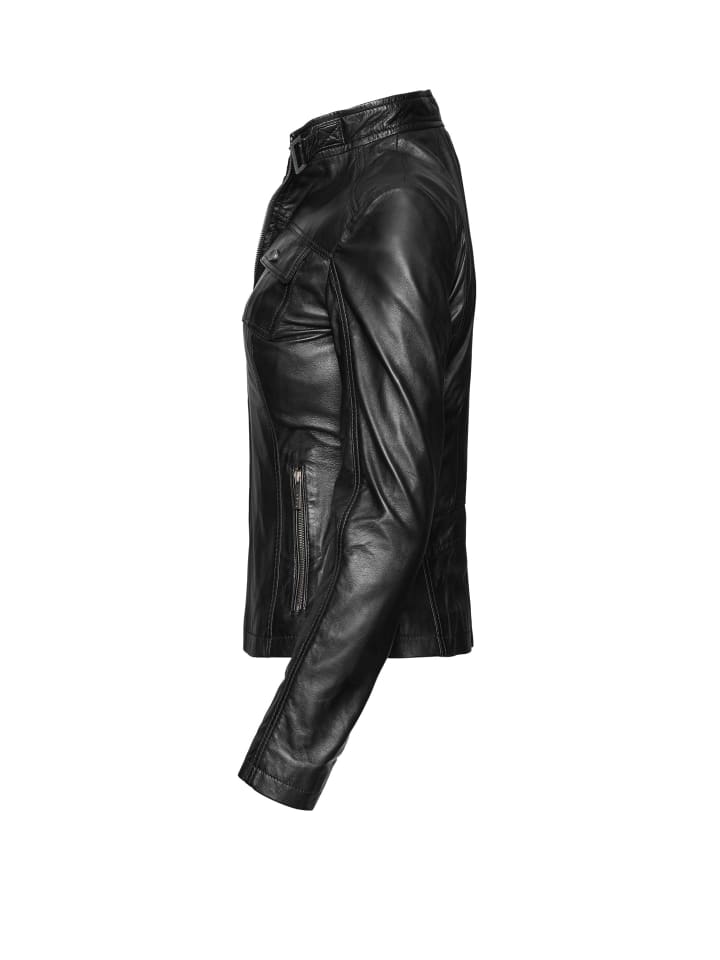 Эта элегантная женская кожаная куртка сочетает в себе женственный крой и эффектные детали. Изготовленная из высококачественной мягкой натуральной кожи, она обеспечивает исключительный комфорт и изысканный вид. Два нагрудных кармана и боковые карманы на молнии добавляют стильные акценты, обеспечивая при этом практичное хранение вещей. Классический воротник-стойка с застежкой на пуговицу подчеркивает современный стиль и обеспечивает защиту от непогоды. Эта куртка станет универсальным аксессуаром, сочетающим стиль и характер, будь то повседневный или элегантный образ. - Приталенный крой - 2 нагрудных кармана - Боковые карманы на молнии - Застежка на пуговицу на воротнике-стойке - Изготовлена из высококачественной мягкой кожи Материал: 100% кожа