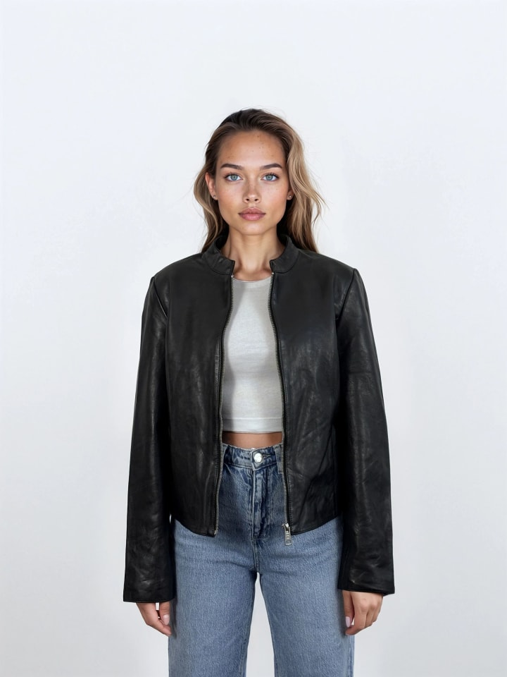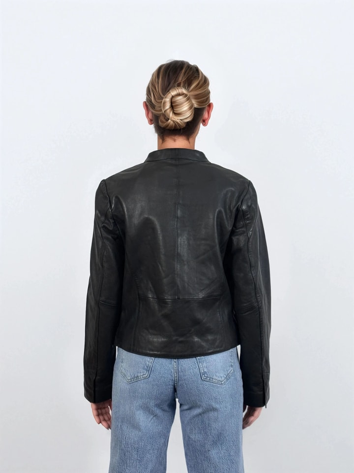 Женская кожаная куртка "Kami" невероятно универсальна. Ее простой дизайн с небольшими боковыми карманами и воротником-стойкой создает элегантный образ. Она имеет женственный, облегающий силуэт и укороченную длину. Эта кожаная куртка изготовлена из высококачественной овчины и имеет отчетливо дерзкий вид. Она идеально дополнит ваш повседневный образ.