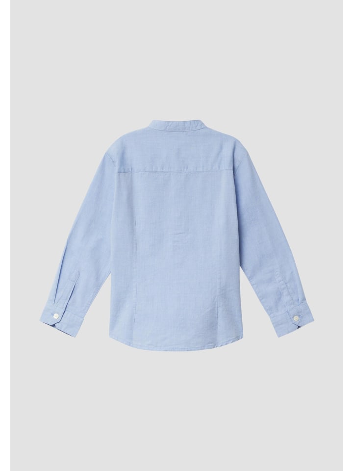 Эта элегантная рубашка из шамбре с воротником-стойкой впечатляет своим современным облегающим кроем. Застежка на пуговицах и манжеты придают ей праздничный вид. Закругленный низ и высококачественная ткань делают ее идеальным вариантом для особых случаев, таких как семейные торжества или праздничные мероприятия. Стильная вещь, которая обязательно должна быть у вашего ребенка!
