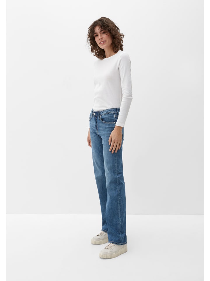 Джинсы Karolin впечатляют классическим прямым кроем и удобной средней посадкой на талии. Благодаря эластичному хлопку они идеально сидят и стильно дополнят ваш повседневный образ. Нежная обработка ткани и кожаная нашивка добавляют сдержанные акценты. - Прямой крой, средняя посадка на талии - Тонкий, эластичный хлопок, деним - Кожаная нашивка, обработка ткани в качестве особой детали - Шлевки для ремня на поясе - Скрытая застежка на молнию и пуговицу, боковые карманы, карман для мелочи и задние карманы. Материал: - 73% хлопок - 25% полиэстер - 2% эластан