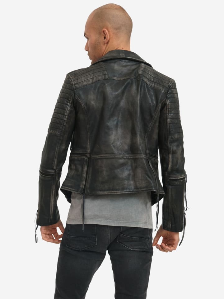 Эта мужская кожаная куртка - абсолютный must-have, ее вневременной дизайн и высокое качество гарантируют, что она никогда не выйдет из моды. Эта классическая куртка в байкерском стиле имеет отложной лацкан и оснащена множеством практичных деталей. Характерные детали включают асимметричную молнию и эффект «рок-даун». Стежка на плечах и верхней части рукавов, а также многочисленные молнии еще больше подчеркивают стиль куртки. Она изготовлена из высококачественной 100% козьей кожи. Эта кожаная куртка имеет очень мужественный и эффектный вид, идеально подходящий как для повседневной носки, так и для вечернего выхода. Особенности: различные карманы на молнии спереди; застежки-молнии с кожаными язычками; отложной лацкан; манжеты на молнии в байкерском стиле; характерные стеганые вставки на плечах. Размер и посадка: приталенный крой. Если вы планируете носить эту куртку в несколько слоев, рекомендуем выбрать на один размер больше.