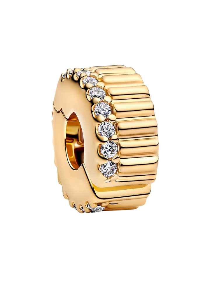 Золотистый ребристый кулон-зажим Pandora