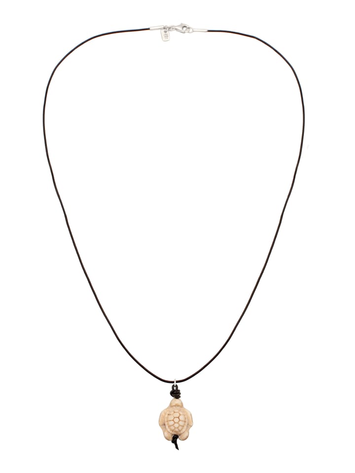- Колье с символом черепахи из кожи и серебра 925 пробы - воплощение силы и долговечности.