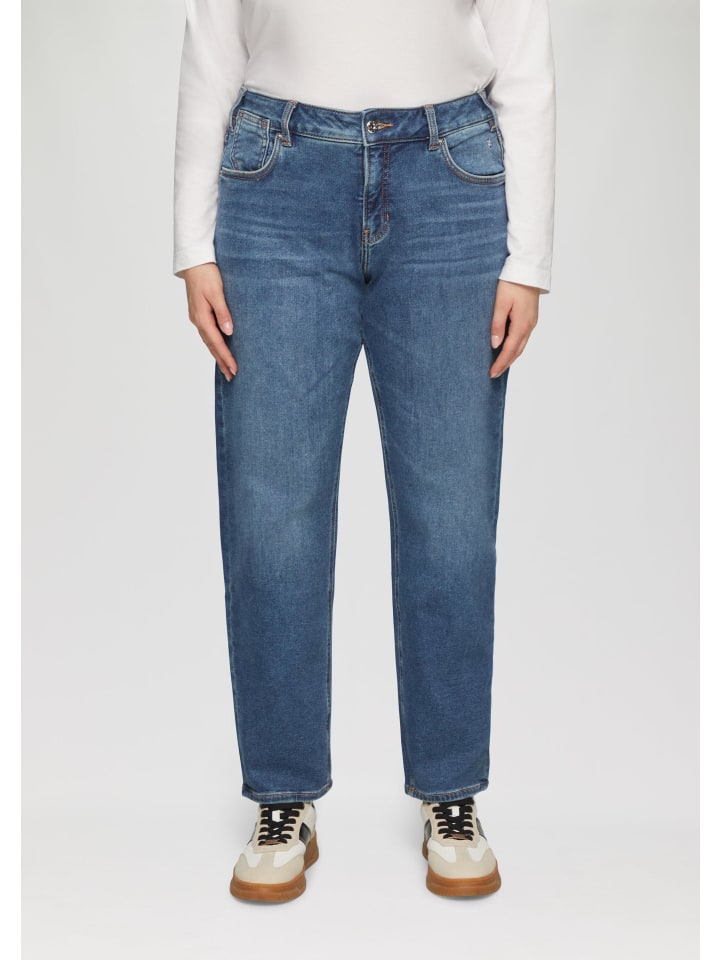 Повседневные и удобные джинсы средней посадки с полуширокими штанинами из эластичного денима. Дизайн с пятью карманами, петлями для ремня, пуговицей и молнией обеспечивает оптимальный комфорт для повседневной носки. Облегающий крой подчеркивает фигуру. - Средняя посадка на талии - Эластичная джинсовая ткань - Петли для ремня - Застежка на молнию и пуговицу Материал: - 81% хлопок - 17% полиэстер - 2% эластан