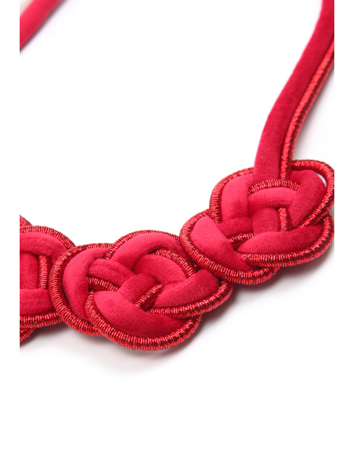 - Красное колье с эффектными узлами