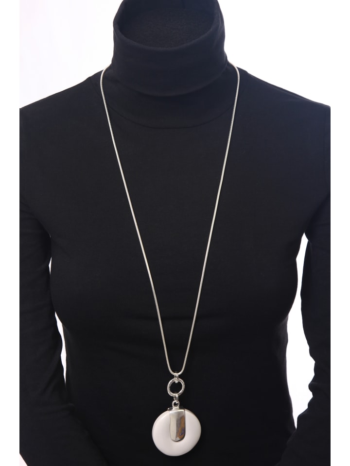 Это очаровательное колье модной длины добавит изысканности вашему образу благодаря простому кулону нежного цвета. Независимо от того, носите ли вы его в повседневном стиле с футболкой или элегантно с шелковой блузкой, это женственное украшение придаст любому наряду жизнерадостный оттенок. Соответствует требованиям REACH. Доступно в золотисто-бежевом и серебристо-слоновом цветах.