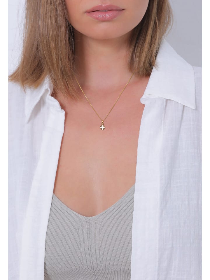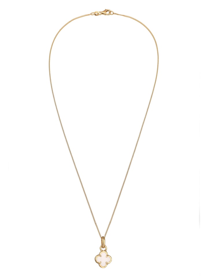 - Колье с подвеской в виде клевера из серебра 925 пробы с золотым покрытием для принесения удачи.