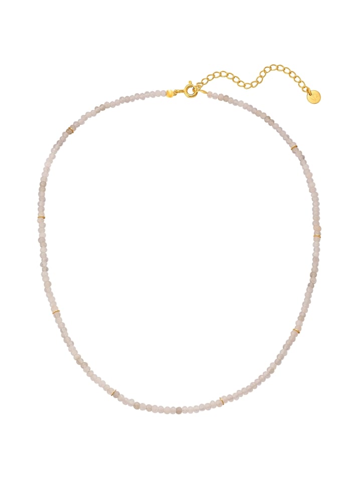 Добавьте вневременной элегантности своему стилю с этим колье с драгоценным камнем от Glanzstücke München. Это изысканное колье, изготовленное из серебра 925 пробы и покрытое 14-каратным желтым золотом, украшено ограненным халцедоном сияющего белого цвета. Драгоценный камень завораживает, переливаясь на свету и придавая любому наряду нотку гламура. Тонкая цепочка оснащена практичным удлинителем, обеспечивающим идеальную посадку по линии шеи. Будь то личное украшение или продуманный подарок - это колье станет выражением стиля и изысканности, приносящим радость!