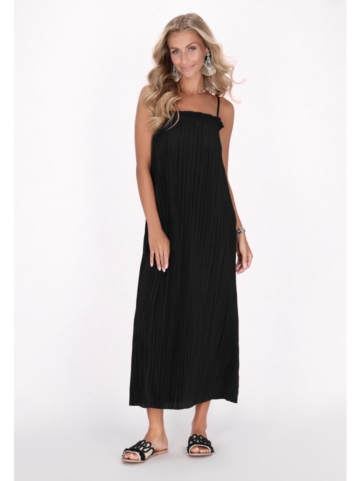 - Свободное плиссированное платье макси с квадратным вырезом и бретелями