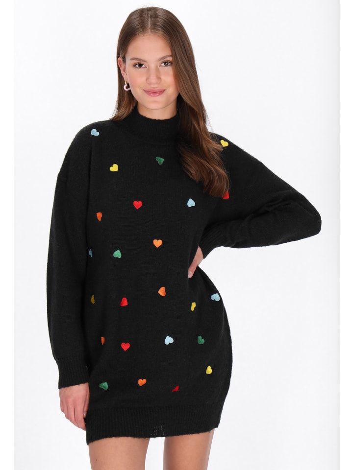 Это очаровательное трикотажное мини-платье из коллекции Young Fashion идеально подойдет для начала учебного года - оно сочетает в себе комфорт, свободный крой и модный, молодежный стиль. Изготовленное из мягкой трикотажной ткани, оно имеет свободный крой, длинные рукава со спущенными плечами и воротник-стойку для придания утонченной элегантности. Нежная вышивка в виде сердечек подчеркивает его очарование. Это идеальный вариант на каждый день - для школы, встреч с друзьями или ленивых послеобеденных часов. Мягкое, девичье и стильное - создано с учетом молодежной моды.