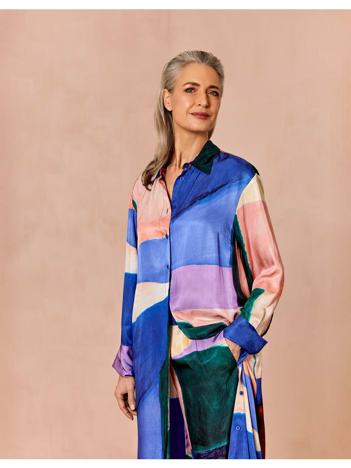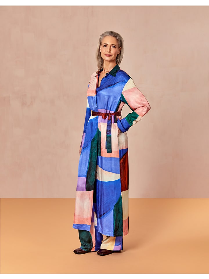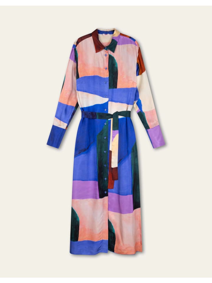 Платье средней длины на пуговицах с легким блеском, украшенное красивым принтом Hueland Hues, выполненным вручную, с крупными абстрактными узорами. Дополните образ поясом в тон. - 100% вискоза - Сделано в Турции - Рост модели 176 см, размер 36.