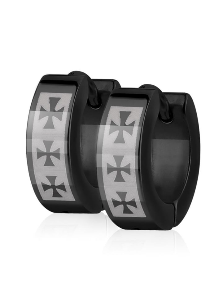 Классические серьги-кольца на шарнирах черного или золотого цвета с тремя крестами на сером фоне. Ширина серьги: 4 мм | Высота: 13 мм | Цвета: черный, золотой, серый | Толщина штифта: 0,8 мм | Количество: 2 штуки (= 1 пара) МАТЕРИАЛ: Нержавеющая сталь / хирургическая сталь 316L - Серьги изготовлены из прочной высококачественной нержавеющей стали. Тип застежки: Шарнирная застежка - подходит для любого прокола уха. Высококачественные серьги-кольца для детей, женщин и мужчин из нержавеющей стали. Серьги можно комбинировать разными способами - отличный аксессуар для молодого, модного образа! Бренд: Bungsa - Ваш ювелирный магазин высококачественных украшений для женщин и мужчин