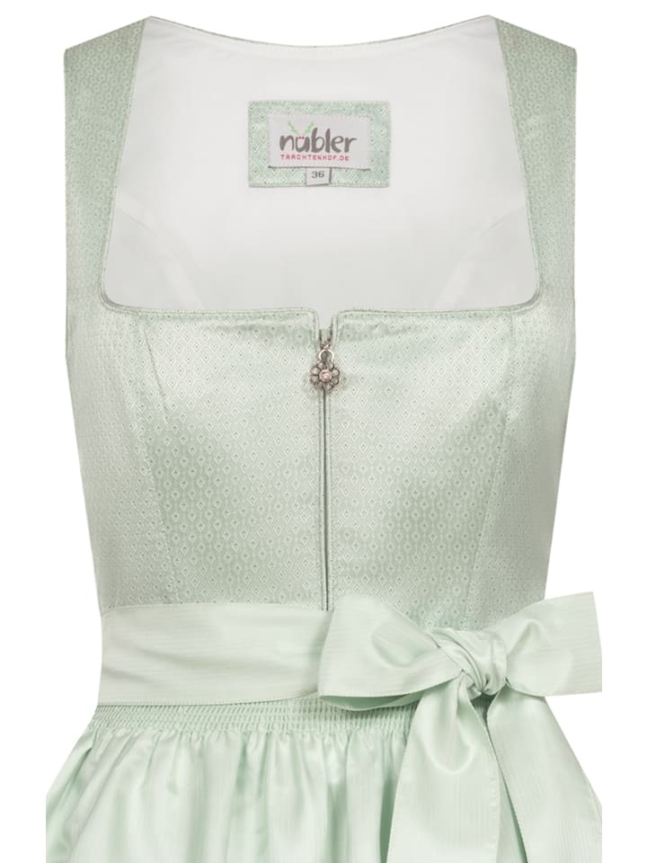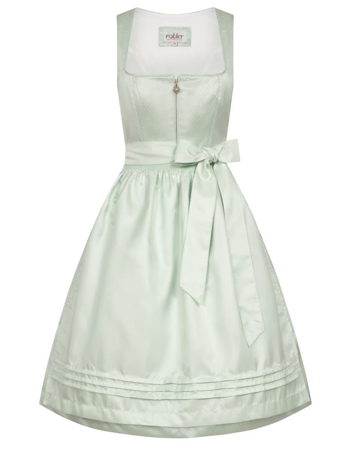 Ищете стильное традиционное платье? Наш дирндль Gina миди зеленого цвета от Nübler идеально подойдет. Платье украшено изящным ромбовидным узором, что придает ему очень модный вид. Практичная молния спереди позволяет легко надевать и снимать его. Лиф имеет классический квадратный вырез. Юбка имеет боковой карман для хранения мелких вещей. Фартук украшен мерцающим светло-полосатым узором, который идеально дополняет общий образ. Фартук завязывается декоративным бантом на талии. В этом дирндля вы будете идеально одеты для любого случая и всегда будете привлекать внимание. Совет: Хотите сделать свой дирндль еще более эффектным? Тогда мы рекомендуем приобрести у нас подходящий бюстгальтер или блузку к нему. Бюстгальтер идеально подчеркнет ваше декольте и придаст вашему дирндля соблазнительный вид. Блузка, в свою очередь, добавит романтичности или игривости вашему дирндлю. Закажите бюстгальтер или блузку для дирдля прямо сейчас и завершите свой сказочный традиционный наряд. Информация о доставке: Если не указано иное, наши дирндли доставляются без блузки, соответствующих аксессуаров и обуви. Инструкции по уходу: Машинная стирка при 30°C в деликатном режиме, глажка при низкой температуре. Для дополнительной защиты положите хлопчатобумажную ткань между изделием и утюгом. Материал: Верхняя ткань: 100% полиэстер; Подкладка: 65% полиэстер, 35% хлопок; Юбка: 100% полиэстер; Фартук: 100% полиэстер.