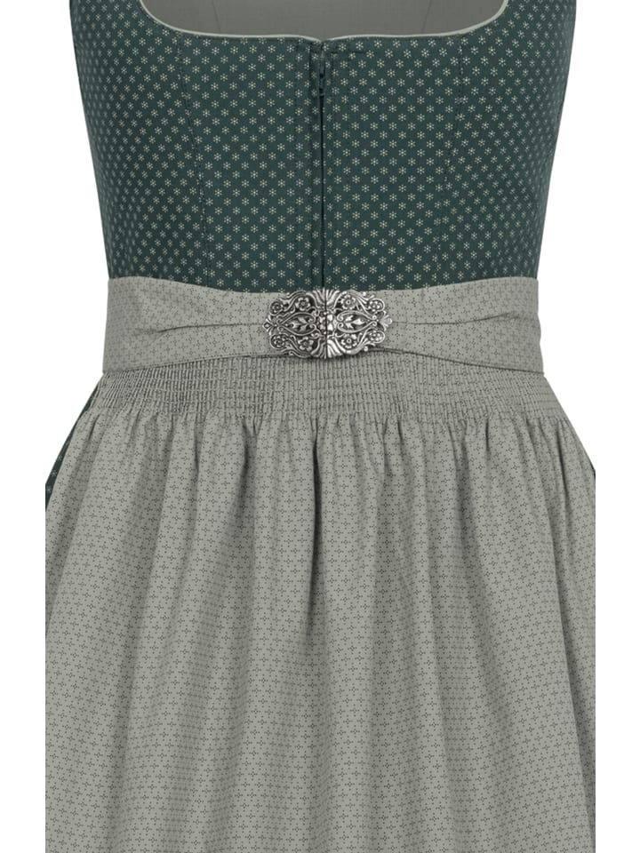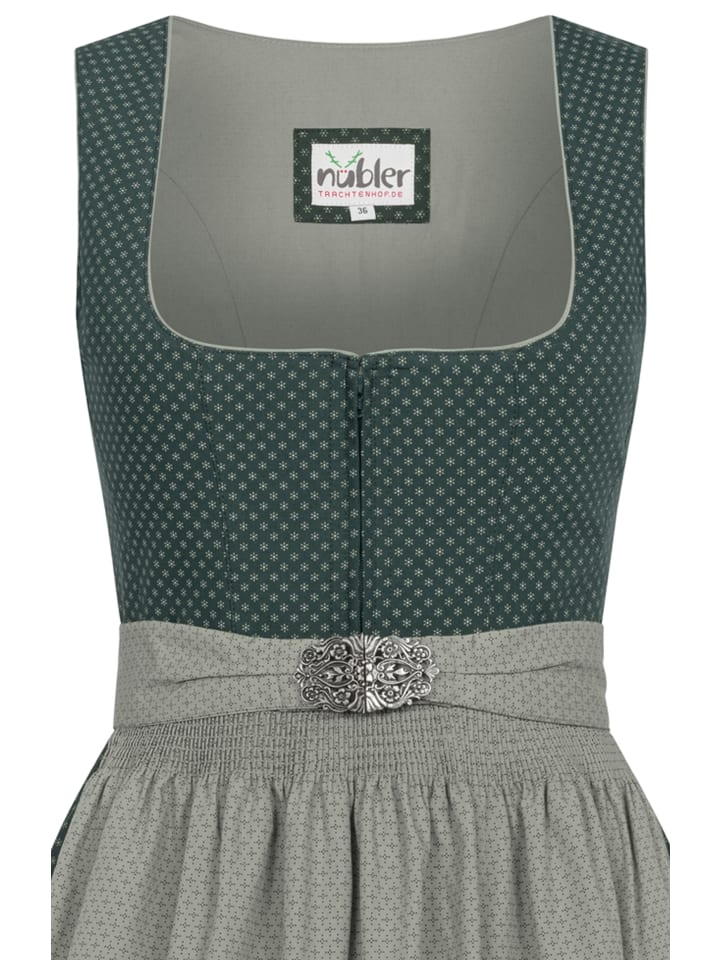 Ищете стильное традиционное платье? Зеленый дирндль «Петра» от Nübler идеально подойдет. Платье украшено мелким, ровным белым цветочным узором в виде крестов, что придает ему очень модный вид. Квадратный вырез отделан каймой, идеально сочетающейся с узором. Застежка-молния спереди обеспечивает стильный и практичный вид. Юбка имеет два боковых кармана для хранения мелких вещей. Прекрасным дополнением является фартук, застегивающийся на пряжку. В этом дирнделе вы будете безупречно одеты для любого случая и станете настоящей звездой. Совет: Хотите еще больше подчеркнуть свой длинный дирндль в деревенском стиле? Тогда мы рекомендуем приобрести у нас подходящий бюстгальтер или блузку к нему. Бюстгальтер идеально подчеркнет ваше декольте и придаст вашему дирнделю соблазнительный вид. Блузка добавит романтичности или игривости вашему дирнделю. Закажите бюстгальтер или блузку для дирндля прямо сейчас и завершите свой восхитительный традиционный наряд.
