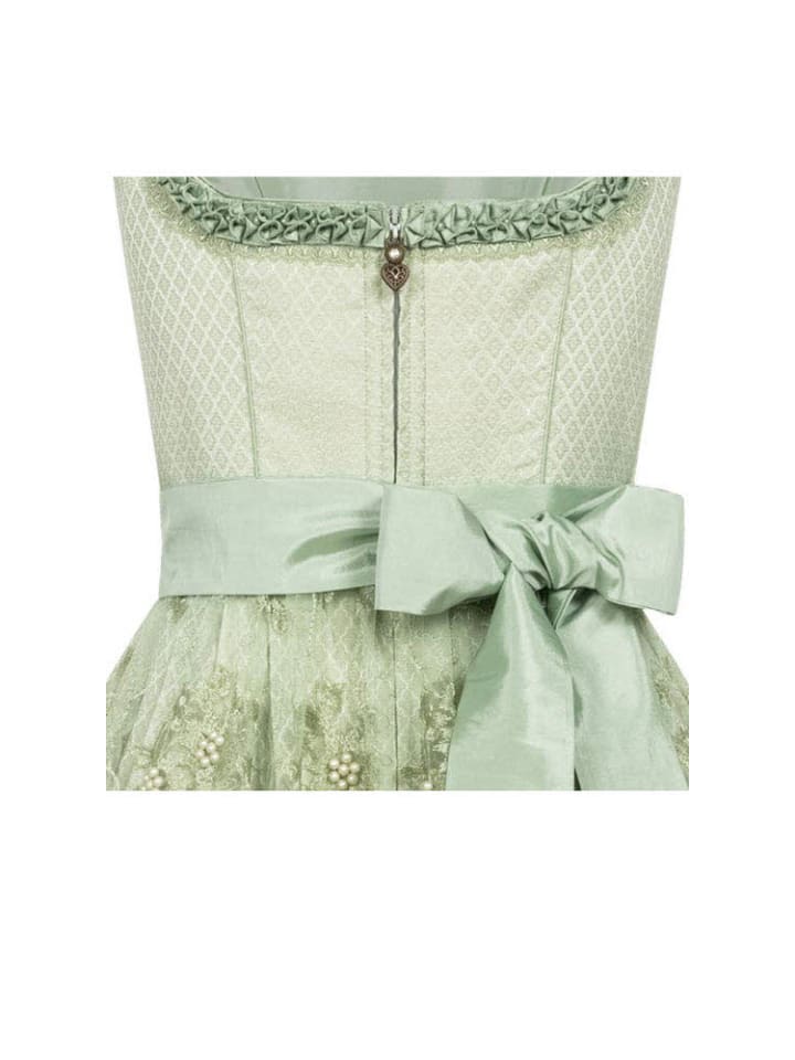 Любите привлекать внимание? В нашем мини-дирдле Edina зеленого цвета от Nübler вы гарантированно будете выглядеть потрясающе. Это особенный дирдль для особого случая. Ромбовидный узор очень элегантно смотрится на слегка мерцающей ткани. Квадратный вырез обрамлен вышитой жемчугом отделкой в виде лягушачьей пасти и кружевной отделкой, искусно подчеркивая ваше декольте. Дирндль застегивается спереди на молнию, дополненную винтажным язычком в форме сердца. Язычок украшен стеклянным камнем, сверкающим на свету. Подол юбки отделан светло-бежевой отделкой, которая идеально гармонирует с зеленым цветом. Абсолютной изюминкой является сетчатый фартук, вышитый цветами и жемчугом, который добавляет образу нотку королевской элегантности. Это платье также подойдет для свадеб и других торжеств. Совет: Образ дополнит прозрачная белая блузка-дирдль с высоким воротником. Рекомендуется использовать бюстгальтер для дирдля, так как он создает типичное для дирдля декольте. Информация о доставке: Если не указано иное, наши дирдли поставляются без блузки, подходящих аксессуаров и обуви. Инструкции по уходу: Машинная стирка при 30°C в деликатном режиме, глажка при низкой температуре. Материал: Внешняя ткань: 40% вискоза, 60% полиамид; Подкладка: 100% полиамид; Фартук: 100% полиамид. Материал: 50% полиэстер, 50% вискоза.