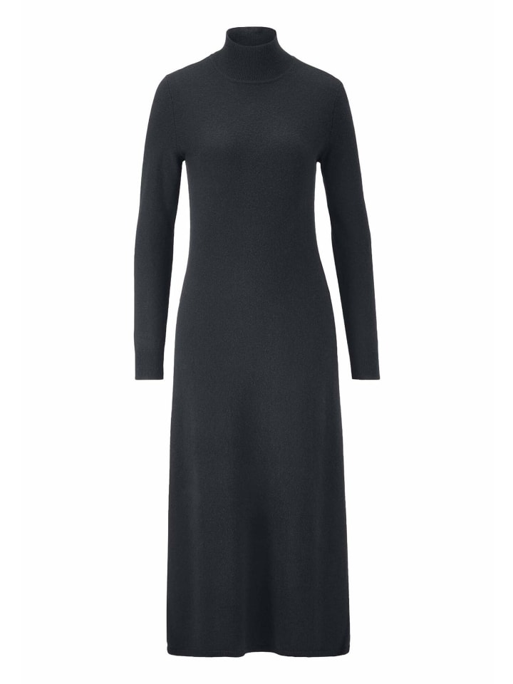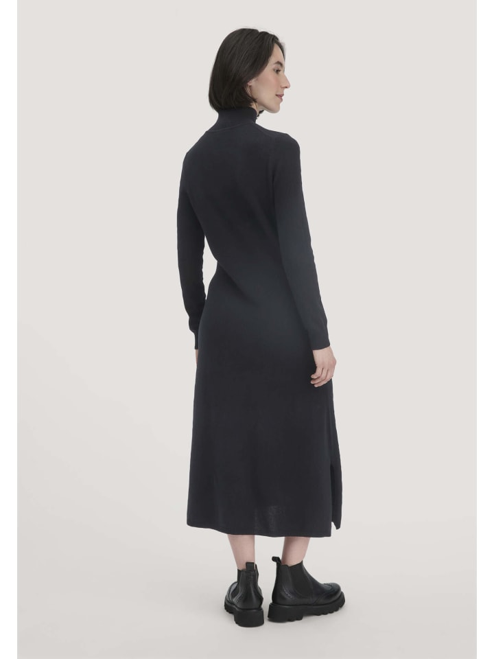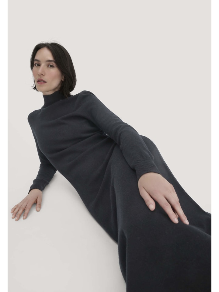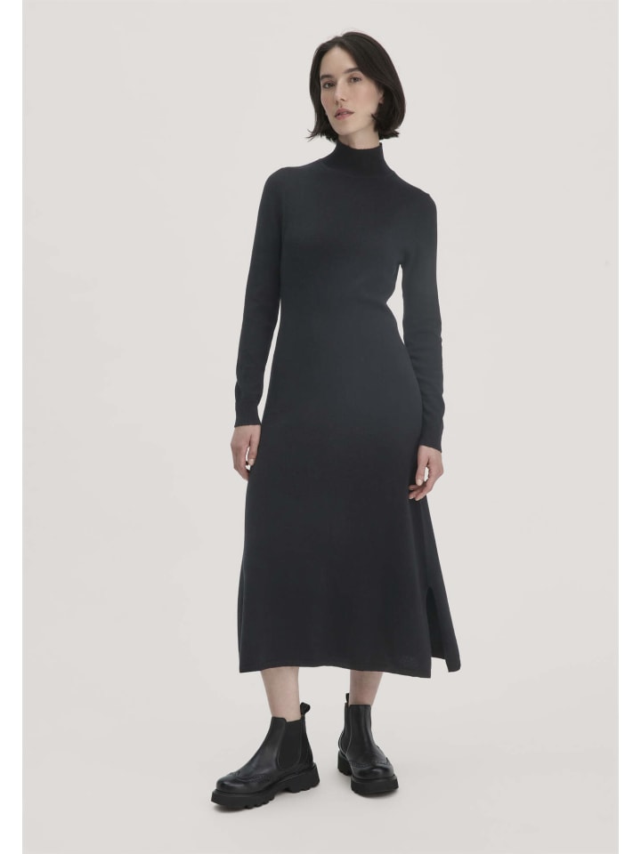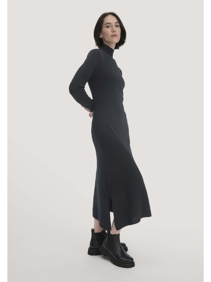 Красота. Мягкость. Забота о себе. Это вязаное платье сочетает в себе изысканный трикотаж с чистыми, почти графическими линиями. Полностью формованная талия и мягко струящаяся расклешенная юбка создают женственный силуэт. Роскошная смесь органической мериносовой шерсти с добавлением кашемира обеспечивает тепло и сдержанную элегантность. Для тех дней, когда вы хотите заявить о себе, не жертвуя стилем.