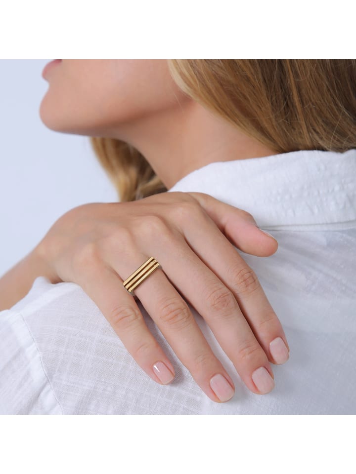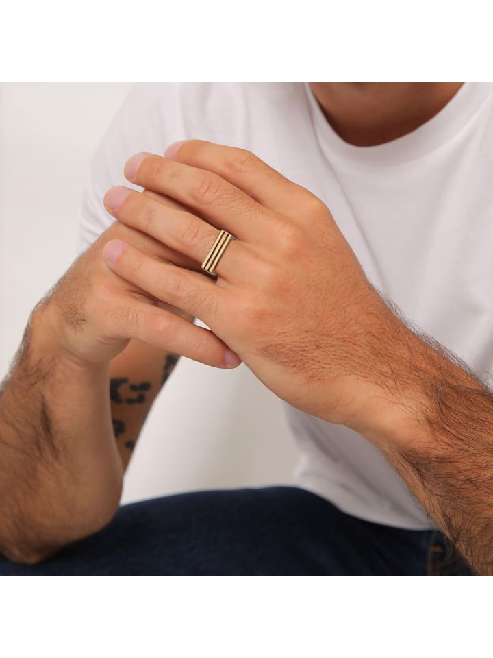 Модный перстень-печатка с уплощенной прямоугольной верхней частью; минималистичный дизайн, текстурированная поверхность с контрастными бороздками; геометрический вид, универсальный и легко сочетается с другими украшениями. - Дополняет ваш гардероб - Подходит для многих стилей - Хорошо сидит