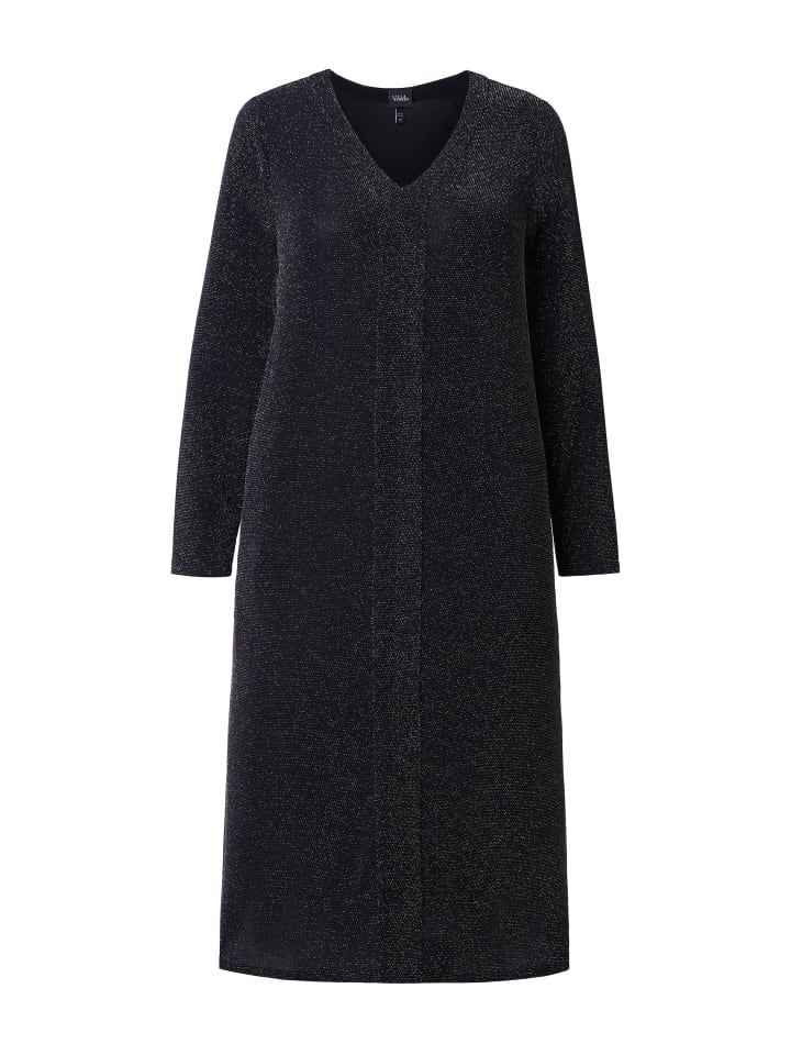 Платье миди с блестками, А-силуэт, изготовлено из мягкого трикотажа с эластичностью и элегантным блестящим эффектом. V-образный вырез, длинные рукава, боковые разрезы для дополнительного комфорта.