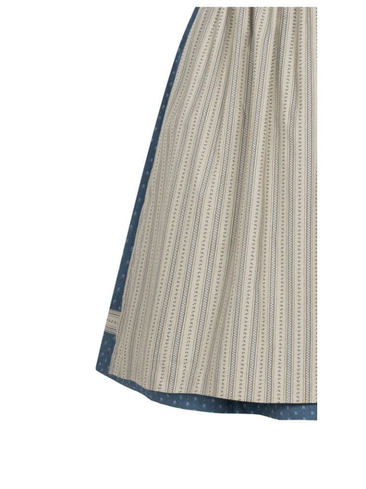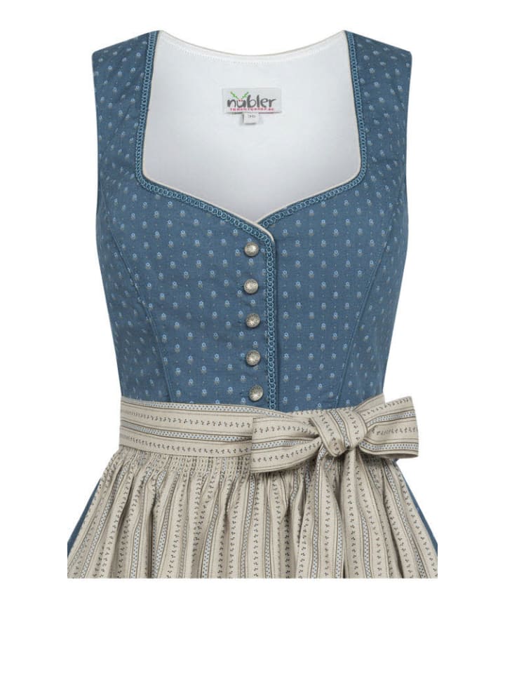 Дирндль Felicitas миди дымчато-синего цвета от Nübler сочетает в себе традиционную элегантность и современный шарм. Цветочный узор по всей поверхности на высококачественном 100% хлопке создает классический образ, а очаровательные детали делают дирндль настоящим украшением. Вырез в форме сердца подчеркнут нежной синей отделкой и идеально гармонирует с планкой с пуговицами под старинное серебро, плоские пуговицы которой украшены изящными цветочными мотивами. Бежевый фартук с замысловатым полосатым узором в виде лозы подчеркивает женственный стиль и создает изысканный контраст с дымчато-синей тканью дирндля. Практичный и стильный одновременно: мелкие необходимые вещи можно безопасно хранить в боковом кармане юбки. Идеально подходит для любого случая: будь то Октоберфест, церковная ярмарка, фольклорный фестиваль или семейное торжество - с дирндлем Felicitas вы всегда будете одеты уместно. Совет: Хотите сделать свой дирндль еще более эффектным? В таком случае мы рекомендуем приобрести у нас подходящий бюстгальтер или блузку для дирдля. Бюстгальтер идеально подчеркнет ваше декольте и придаст вашему дирндля соблазнительный вид. Блузка для дирдля, в свою очередь, добавит романтичности или игривости. Закажите свой бюстгальтер или блузку для дирдля прямо сейчас и завершите свой сказочный традиционный наряд.