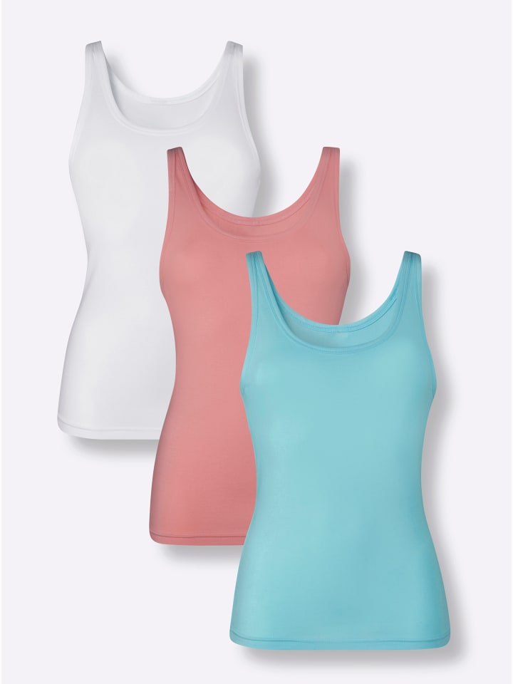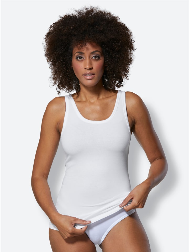 Такая мягкая, такая удобная, такая восхитительно простая: майка от Wäschepur в выгодном комплекте из 3 штук с широкими, очень удобными бретелями.