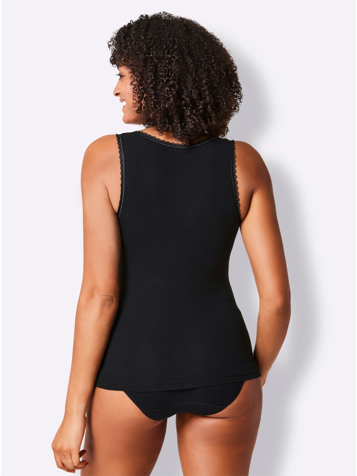 Практичный двойной комплект: бюстгальтер-топ без косточек от Wäschepur. Милый: нежная кружевная отделка по линии декольте, между чашечками и вдоль бретелей. Эластичная лента под грудью обеспечивает дополнительную поддержку. Сертифицировано OCS.