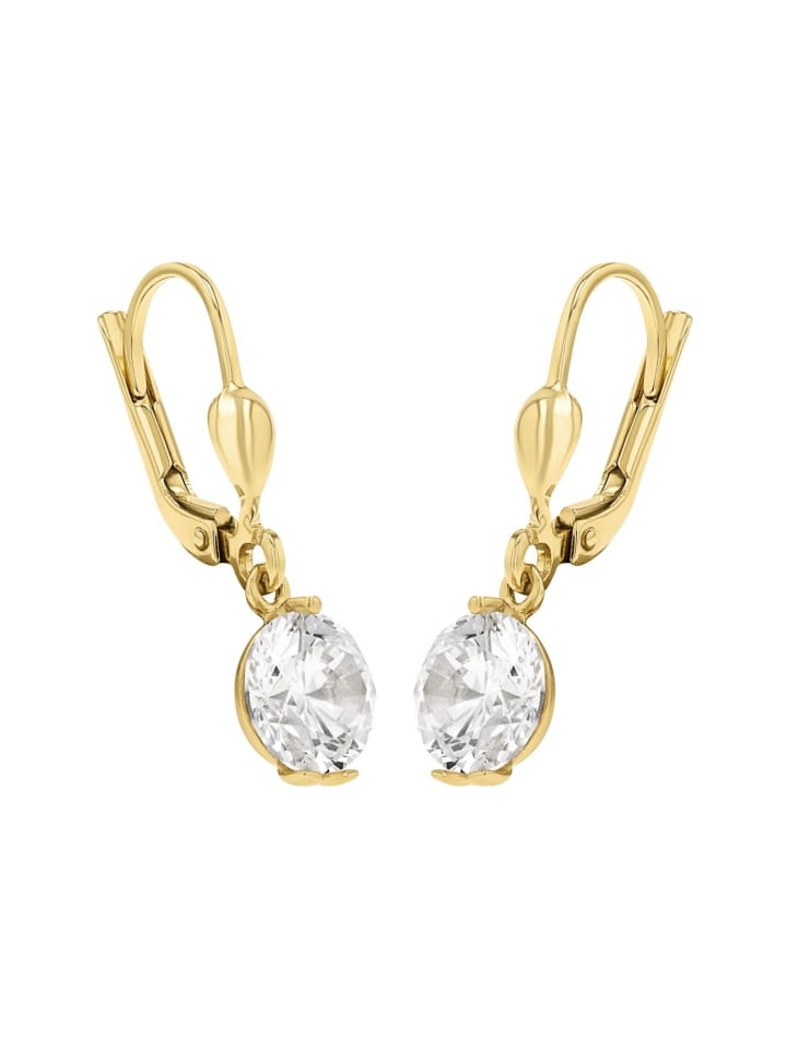 - Серьги изготовлены из высококачественного золота 375 пробы и инкрустированы синтетическими кубическими циркониями.