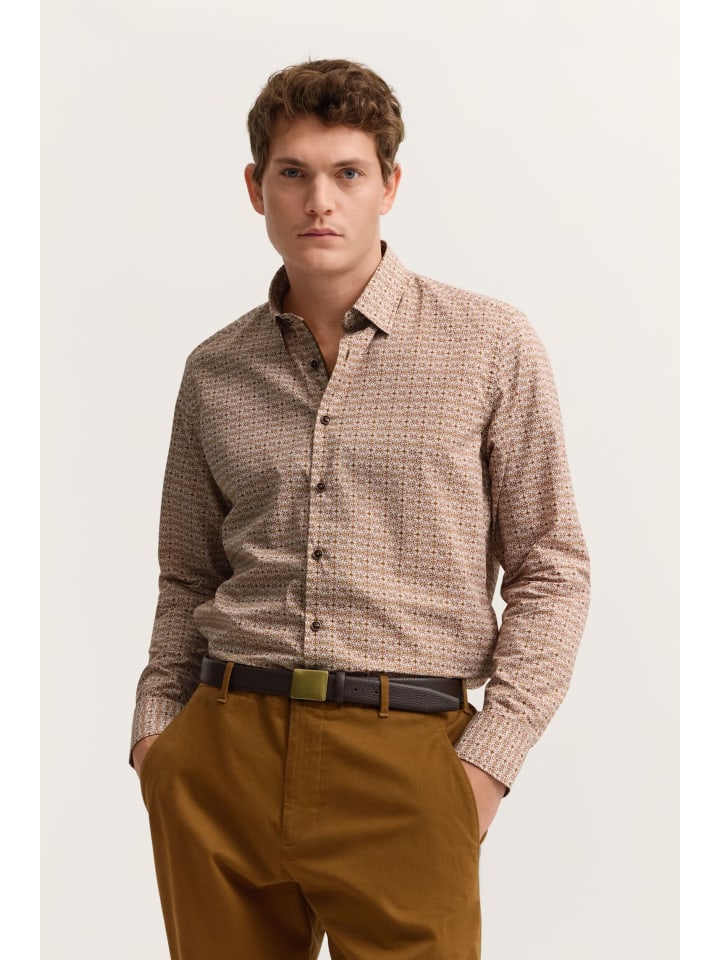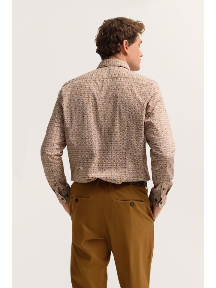 Эта рубашка Bugatti сочетает в себе современный стиль и непринужденный комфорт - настоящая любимая вещь Bellissimo для вашей повседневной жизни. Изготовлена из 100% мягкого, дышащего хлопка, она имеет обработку, облегчающую глажку и сохраняющую гладкость ткани надолго. Воротник с застежкой на пуговицах снизу создает аккуратный, элегантный вид, идеально подходящий как для деловых, так и для повседневных образов. Ненавязчивый принт добавляет современный штрих, а современный крой обеспечивает облегающий и удобный силуэт. Легкий уход: машинная стирка в щадящем режиме при температуре до 40°C. Гладить при средней температуре. Не подходит для сушки в сушильной машине, не отбеливать и не подвергать химчистке.