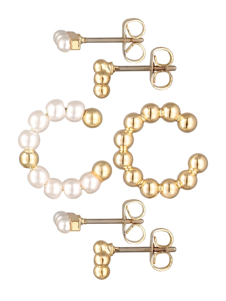- Набор сережек с жемчужной отделкой и золотистой латунью для придания элегантности