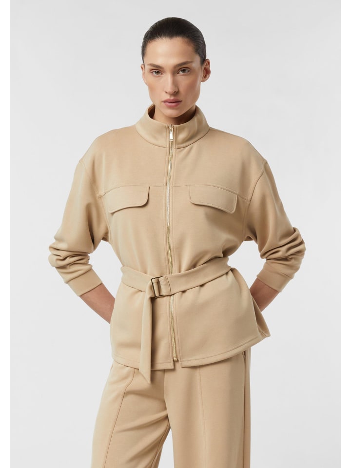 Эта повседневная куртка-толстовка с пришитым капюшоном и воротником-стойкой сочетает в себе спортивный шарм и женственный силуэт. Съемный пояс на талии подчеркнет вашу фигуру или может быть снят для более свободного кроя. Практичные нагрудные карманы и молния во всю длину дополняют дизайн. Идеально подходит для повседневных случаев - сочетайте ее с джинсами для прогулки по городу или наденьте поверх платья для стильного многослойного образа в прохладные дни. - Свободный крой - Ткань: толстовка - Пришитый капюшон, воротник-стойка, круглый вырез - Нагрудный карман, молния, длинные рукава