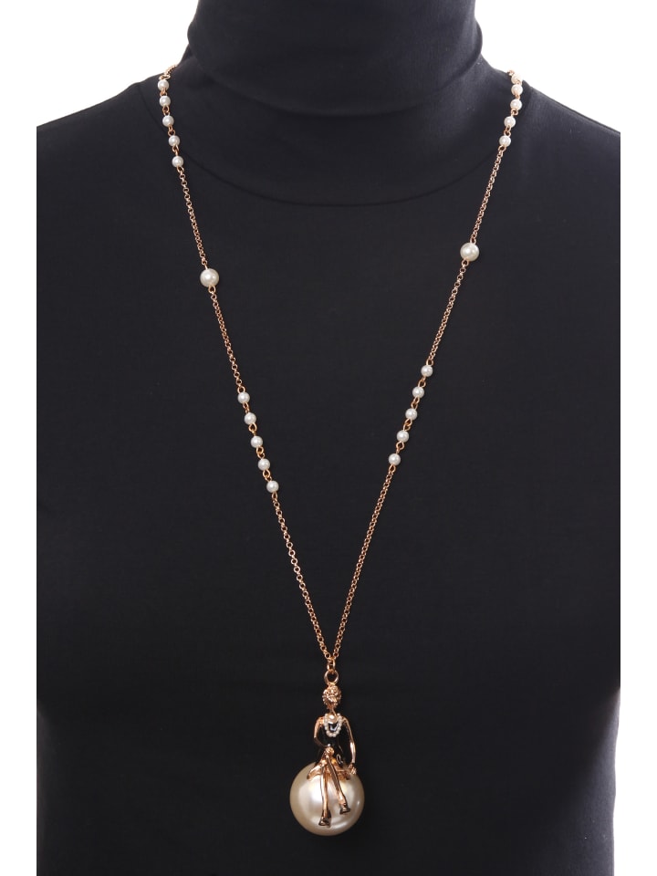 С этим длинным, модным колье вам не нужно быть поп-звездой, чтобы почувствовать себя так, словно вы сидите на шаре. Золотистая цепочка украшена мелкими жемчужинами, а на конце расположена крупная жемчужина, на которой покоится элегантно одетая женщина в жемчужном колье. С этим колье вы всегда будете в центре внимания. - с крупной жемчужиной - Длина около 90 см + 4 см удлинение, диаметр крупной жемчужины около 3 см - с застежкой-карабином - Модный аксессуар - Соответствует требованиям REACH