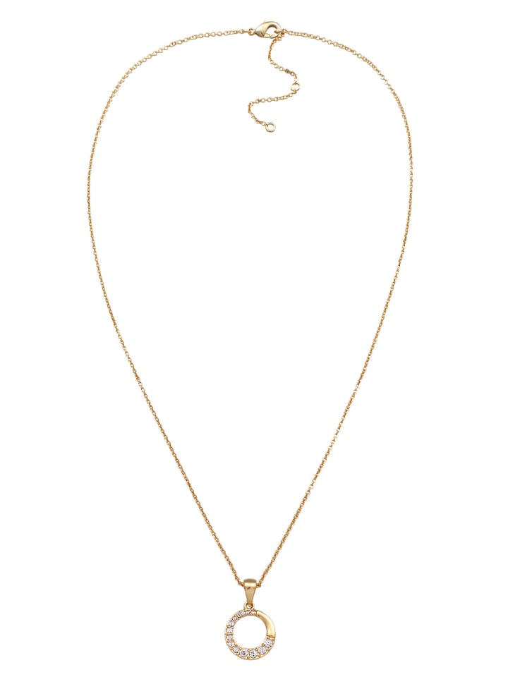 Это шикарное колье длиной 45 см изготовлено из высококачественной латуни и украшено круглым кулоном, декорированным сверкающими кристаллами. Его современный и элегантный дизайн очаровывает. Золотистое покрытие добавляет экстравагантного блеска и особого сияния. - Колье с круглым латунным кулоном для вневременного образа - Ювелирное изделие со сверкающим камнем, идеально подходящее для особых случаев - Элегантные латунные украшения, идеально подходящие к модным нарядам - Короткое колье с кристальным кулоном и застежкой-карабином, длиной 40 см - Идеально подходит для свадеб или в качестве прекрасного подарка для особенного человека