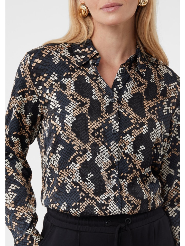 Элегантность и смелость: эта блузка-рубашка из вискозного атласа с анималистическим принтом станет вашим новым ярким акцентом. Принт по всей поверхности добавит изюминку вашему образу, а классический воротник-стойка обеспечит деловой стиль. Длинные рукава с манжетами и застежкой на пуговицы предлагают множество вариантов стилизации. Прямой подол с боковыми разрезами выгодно подчеркнет вашу фигуру и обеспечит комфортную свободу движений. - с модным принтом по всей поверхности - с воротником-стойкой - рукава с манжетами, застежка на пуговицы, длинные рукава - с боковыми разрезами по низу. Материал: 100% вискоза