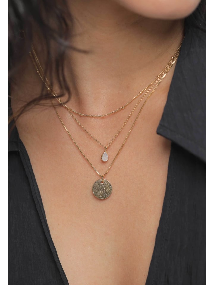 Это трехрядное многослойное колье, изготовленное вручную из родированного серебра 925 пробы, - поистине исключительное ювелирное изделие. Три цепочки разной длины имеют разные дизайны и украшены различными подвесками. Короткая цепочка с шариками дополняет более длинную цепочку якорного плетения с мерцающей подвеской в форме капли из лунного камня. Изюминкой является длинная венецианская цепочка, украшенная подвеской в виде диска с текстурированной поверхностью. Это модное многослойное украшение излучает антикварный винтажный стиль. Расширьте свою коллекцию украшений этим модным аксессуаром и сделайте его центральным элементом любого образа! Это эксклюзивное изделие является продуктом Elli PREMIUM и поставляется в элегантной подарочной коробке.