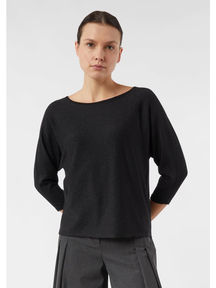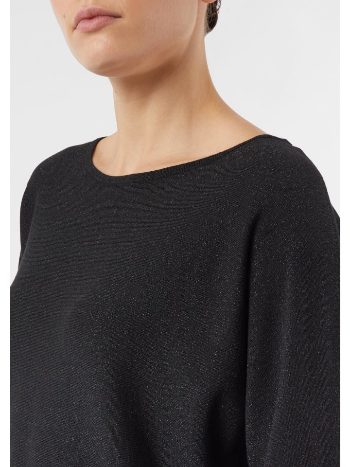 Этот свободный вязаный свитер очаровывает элегантной блестящей пряжей, добавляющей изысканные акценты. Женственный вырез-лодочка изящно подчеркивает плечи, а свободные рукава-летучая мышь длиной три четверти обеспечивают современную свободу движений. Высококачественная тонкая вязка невероятно мягкая на ощупь. Идеально подходит для создания повседневного образа с джинсами или для нарядного образа с юбкой для торжественных случаев - универсальное дополнение к любому гардеробу.