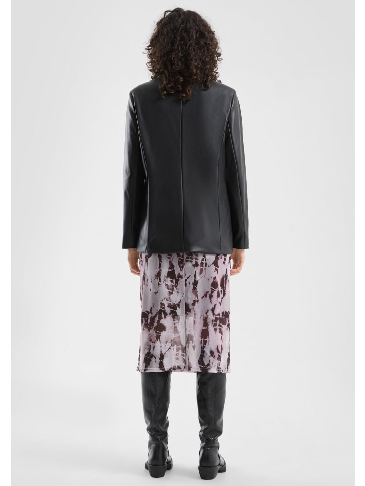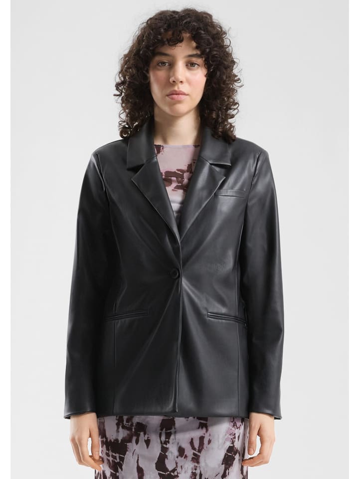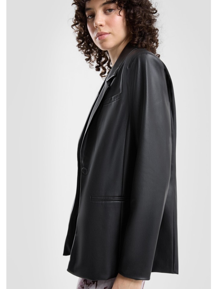 Этот домашний пиджак из изысканной искусственной кожи мгновенно добавит стиля вашему образу. Классический крой с отложным лацканом создает ощущение непринужденности и делает любой наряд выразительным. Мягкий, эластичный материал с покрытием приятен на ощупь как для повседневной носки, так и для торжественных случаев. Прорезные карманы и застежка на пуговицы идеально дополняют современный образ. - Классический крой - Мягкая, эластичная ткань с подкладкой из тафты - Искусственная кожа - Отложной лацкан - Длинные рукава, застежка на пуговицы, прорезной карман Материал: 100% полиэстер