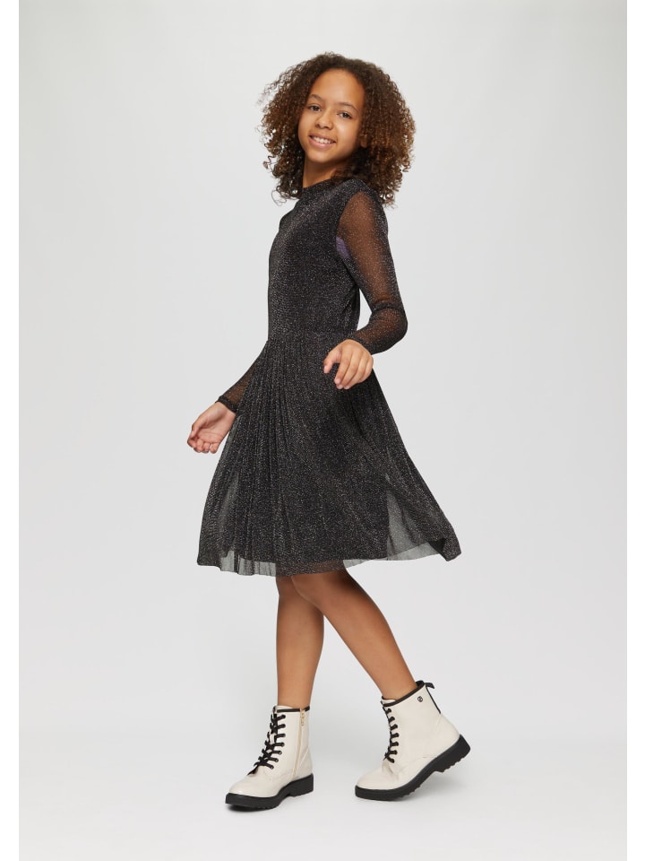Блестящее сетчатое платье для праздничных случаев! Прозрачные длинные рукава и воротник-стойка придают вашей дочери элегантный вид. Нежная драпировка подчеркивает ее девичий силуэт. Идеально сочетается с балетками для особых случаев. Наряд, в котором юные девушки будут чувствовать себя комфортно. - Стандартный крой - Сетка с легкой мягкой подкладкой - Сборки - Воротник-стойка с круглым вырезом - Длинные рукава - Материал: 100% полиамид
