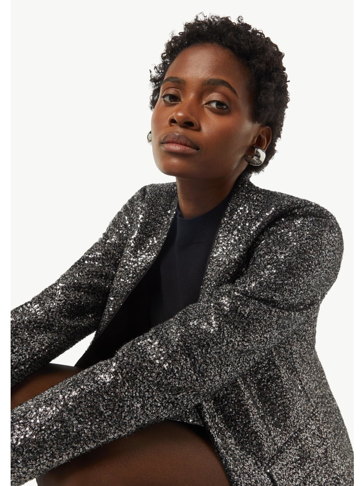 Блестящий гламур для вашей следующей вечеринки: этот праздничный блейзер с пайетками мгновенно добавит роскоши вашему образу. Высококачественный крой с воротником-стойкой и длинными рукавами подчеркнет вашу фигуру, а частичная подкладка обеспечит комфорт при ношении. Практичные накладные карманы и застежка на крючок дополняют функциональный дизайн. Создайте потрясающий образ!