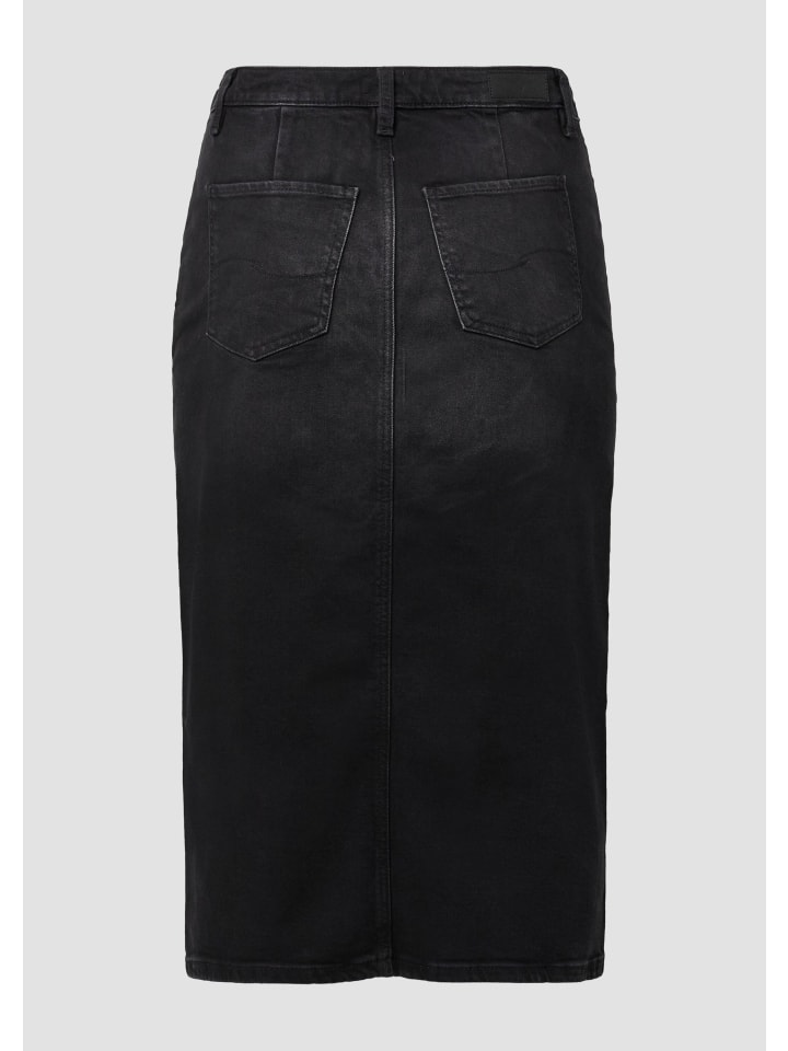 Стильная юбка миди из черного денима для повседневного образа. Приталенный крой со средней посадкой на талии и практичными петлями для ремня. Слегка эластичный деним обеспечивает комфорт на каждый день. Идеально подходит для создания стильных повседневных образов!