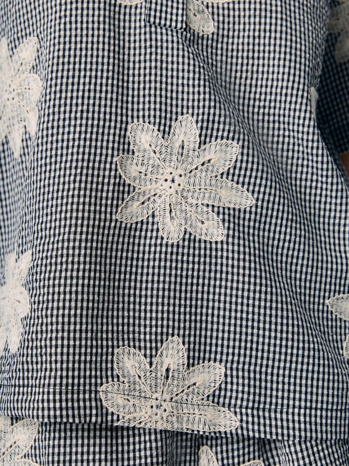 - Поло в клетку с цветочной вышивкой