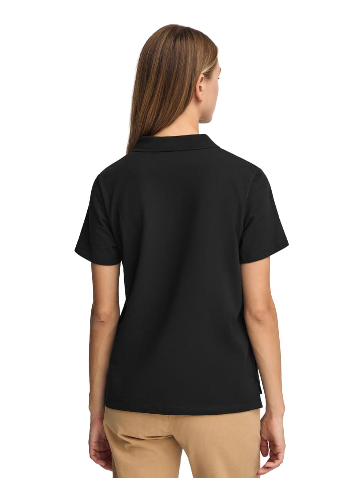 Женская поло-рубашка с короткими рукавами и прямым кроем, с тремя пуговицами на воротнике. Изготовлена из хлопкового пике. Контрастный логотип делает ее вневременной базовой вещью.