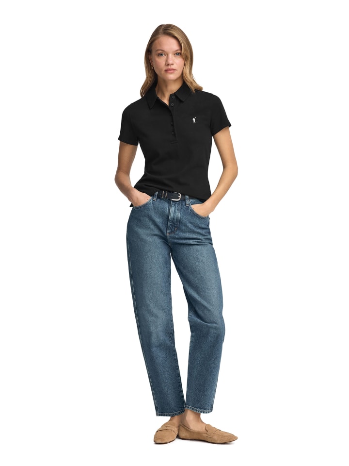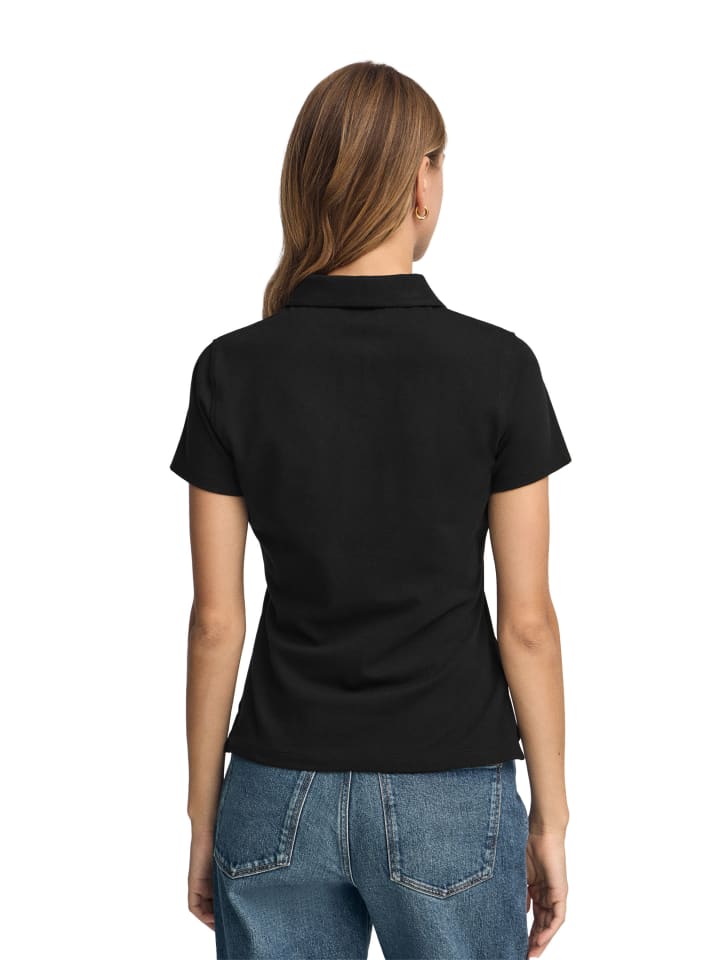 Женская поло-рубашка с короткими рукавами, приталенного кроя, с пятью пуговицами на воротнике. Изготовлена из хлопкового пике, универсальная вещь для создания привлекательного повседневного образа.