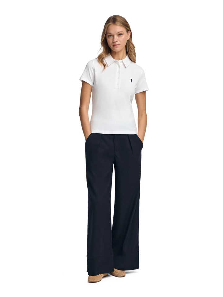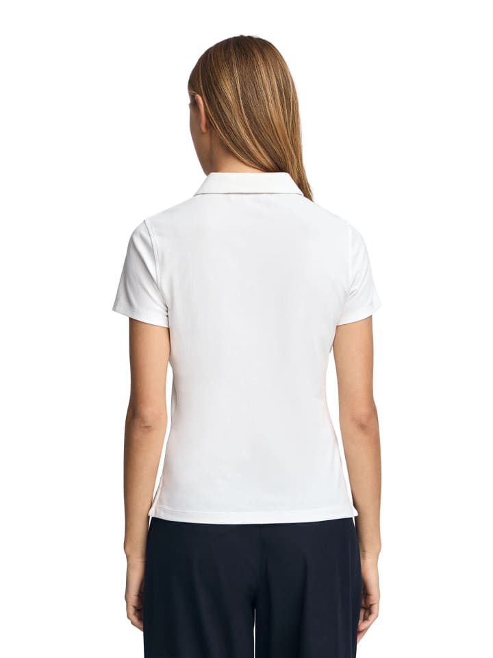Женская поло-рубашка с короткими рукавами, приталенного кроя, с пятью пуговицами на воротнике. Изготовлена из хлопкового пике, универсальная вещь для создания привлекательного повседневного образа.