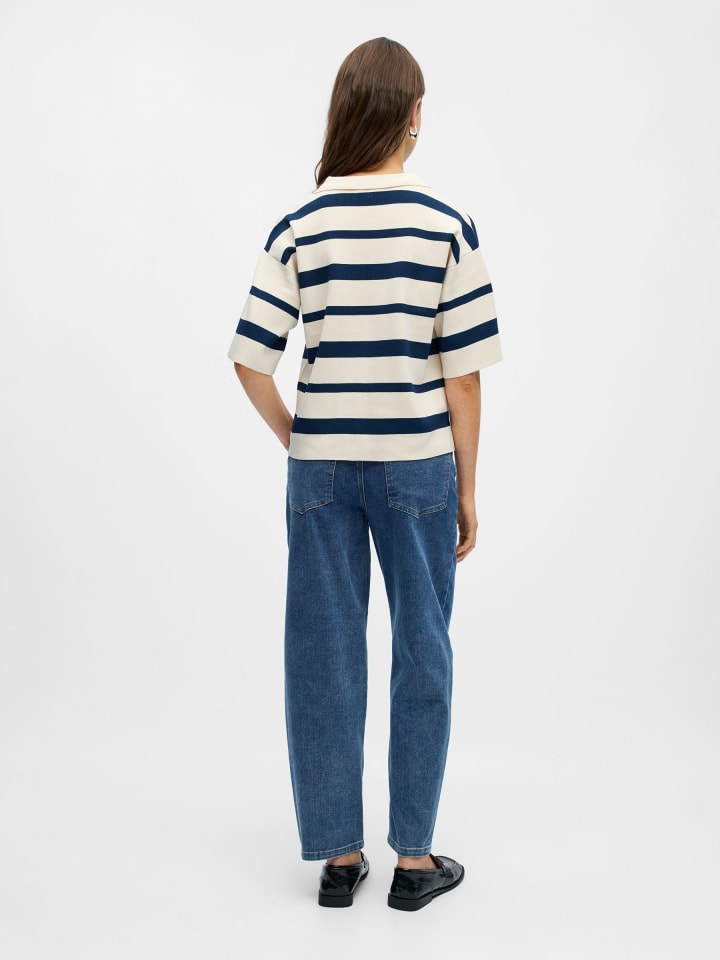 - Вязаная рубашка-поло в полоску