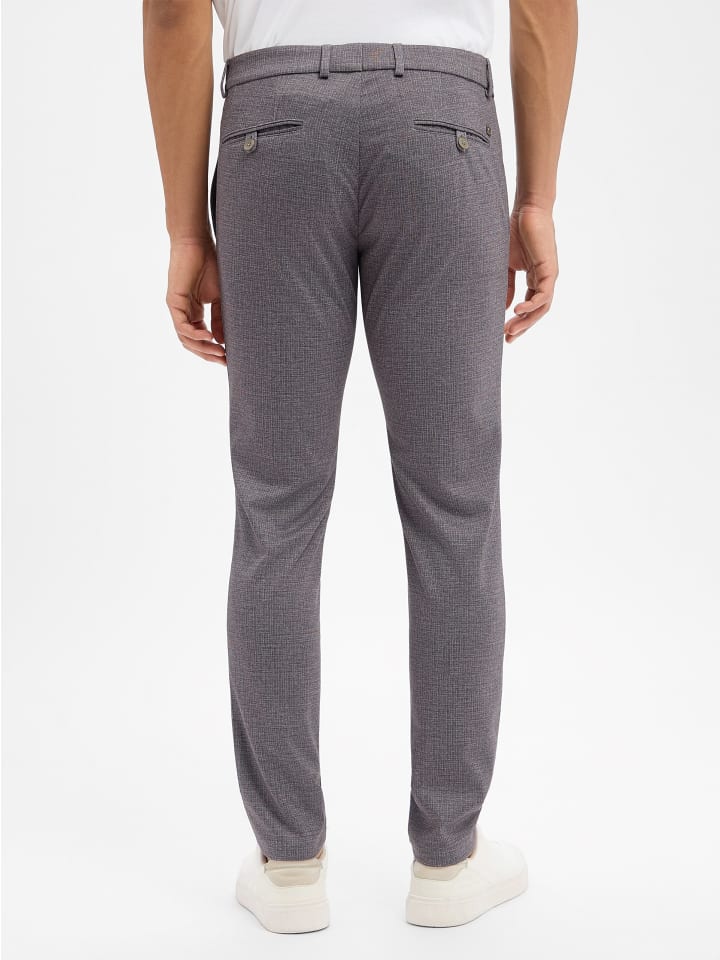 Благодаря эластичной ткани и приятному легкому материалу, брюки Bugatti Renzo обеспечивают исключительный комфорт в течение всего дня - идеальный вариант для долгих рабочих дней в офисе. - Зауженный крой - Скрытая застежка на крючок, пуговицу и молнию - 2 боковых кармана, 1 карман для мелочи на пуговице - 2 прорезных задних кармана на пуговице - Эластичная смесь синтетических волокон