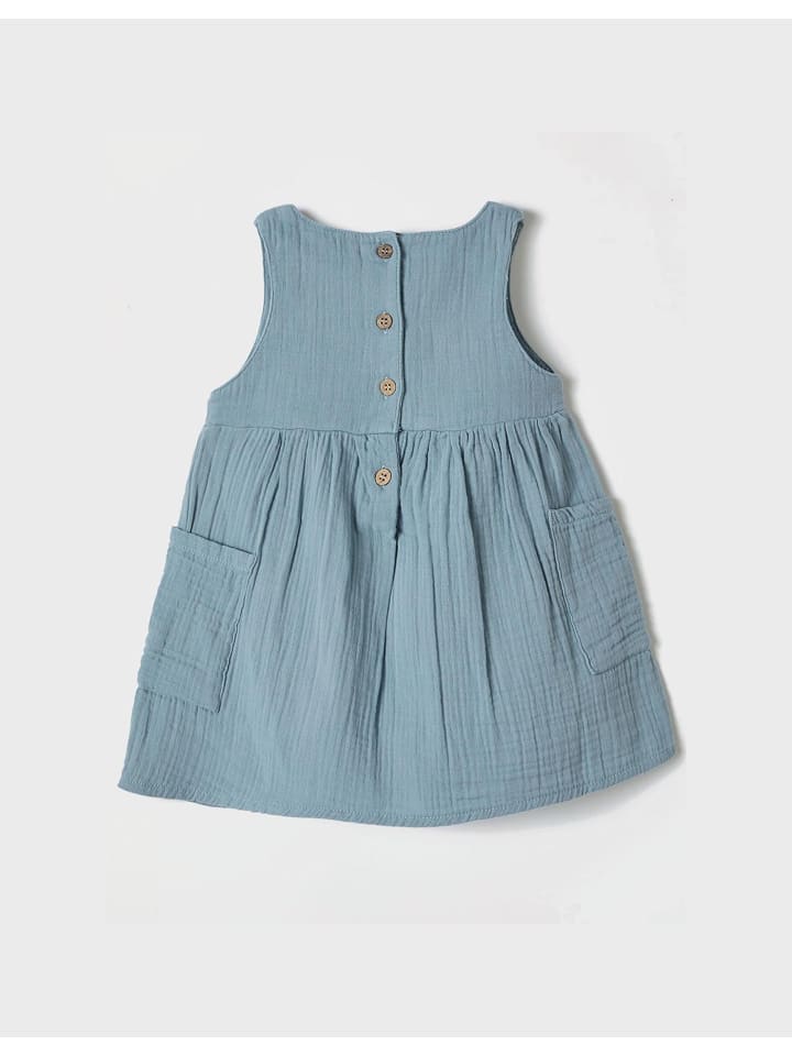 Платье без рукавов OrganicEra из органического муслина с карманом обеспечит вашей малышке стильный и прохладный вид в теплые дни. Мягкий, дышащий муслин из 100% органического хлопка обеспечивает превосходный комфорт и свободу движений. Практичный боковой карман не только удобен, но и является милым дополнением. Благодаря свободному крою и отсутствию рукавов, платье предоставляет достаточно места для игр и резвости. Свежий бирюзовый цвет делает платье настоящим украшением - идеально подходит для повседневной носки. И самое главное: оно полностью не содержит вредных химических веществ и поэтому особенно бережно относится к коже. - Мягкий, дышащий муслин для максимального комфорта - 100% органический хлопок, нежный для кожи - Это платье без рукавов сочетает в себе комфорт и стиль - идеально подходит для любого случая